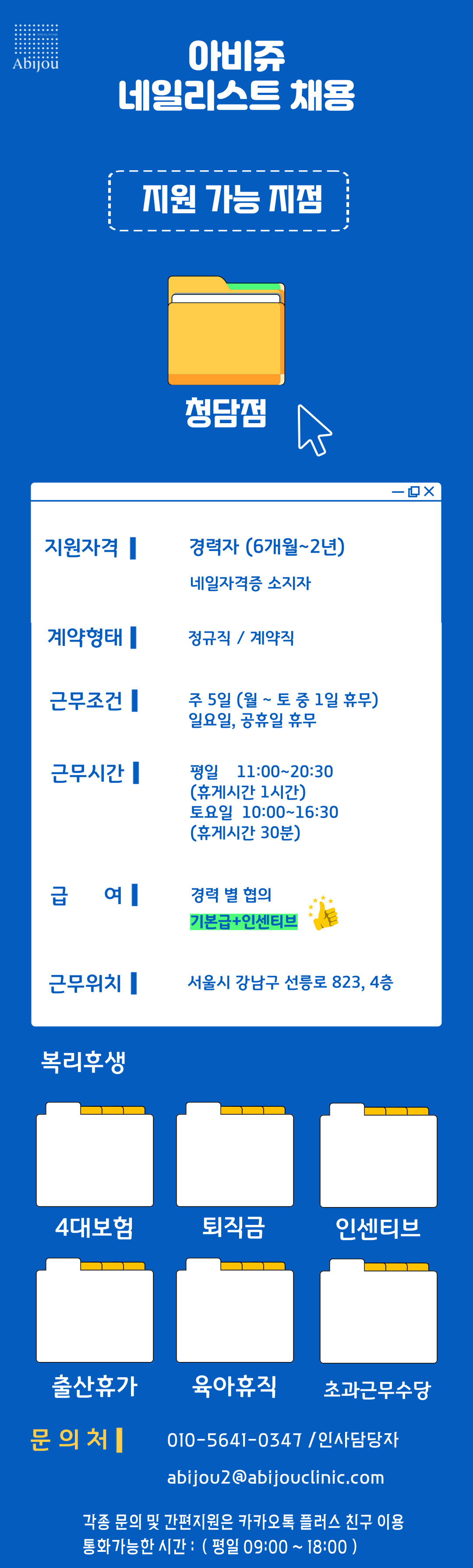 [인센티브최고/압구정로데오역] 아비쥬 청담점 6개월 이상 경력자 네일리스트 채용